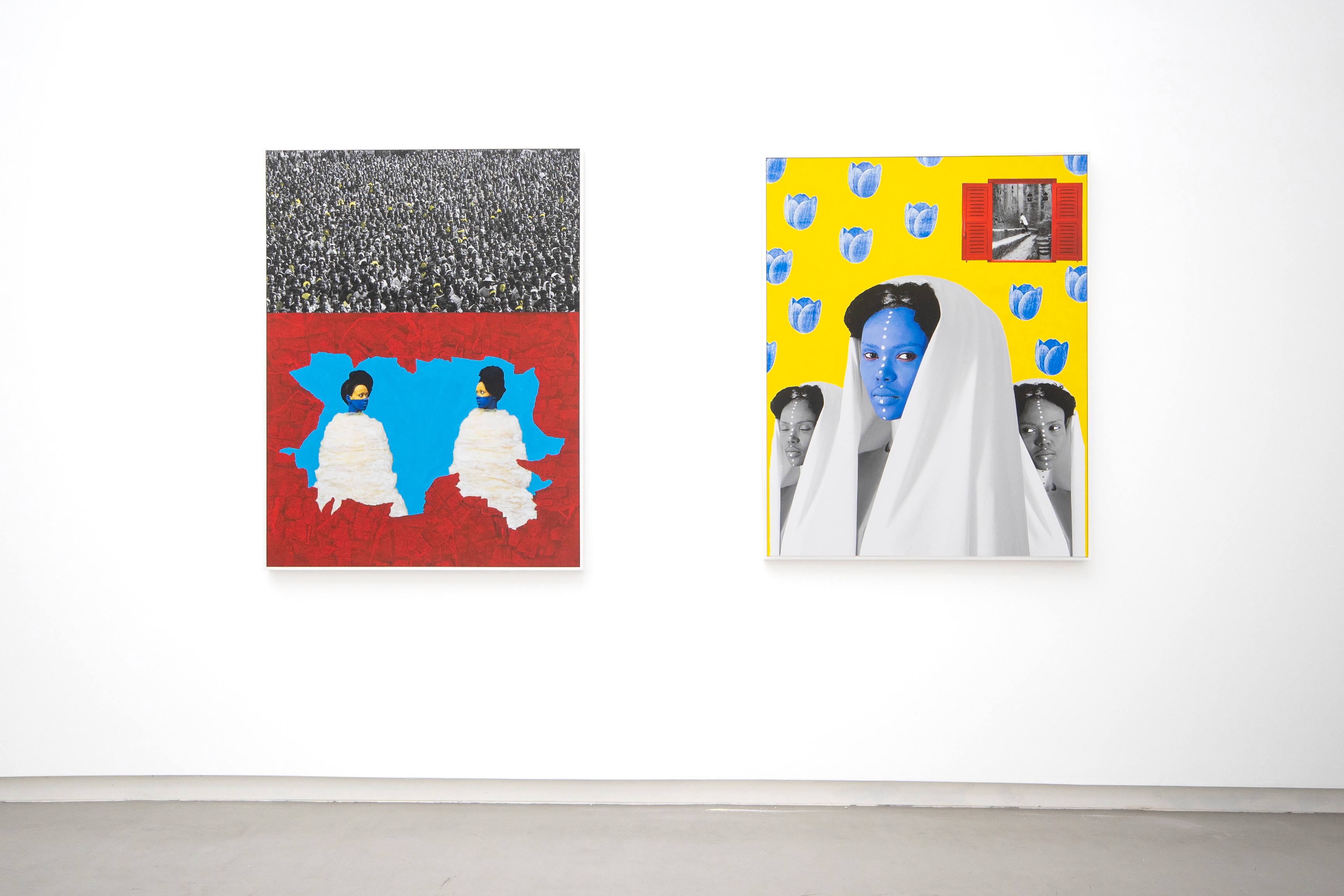 The use of her earliest images her documentary or photojournalistic period - which suddenly become archival, underscores the invisible bond between this dual figure and the crowd evolving behind a wall of clichés and received ideas. Despite the opening created, the crowd appears determined to remain within this uncomfortable zone of political and societal comfort. Here, the back and forth and the possibility of transformation perceived throughout the series seem blocked, despite the artist’s efforts to make - two seemingly incompatible worlds coexist. What renders Muluneh’s new work so resonant is undoubtedly her choice of allegory. The dominance of red and blue is far from incidental. Blue is the coldest colour on the chromatic circle; in false-colour thermographic images, it invariably signifies cold. Classical painting teaches that atmospheric perspective consists in bluing distant forms, and that shadows in recesses are cooler and darker than local tones. Red, by contrast, functions as the colour of shock, fire, violence, and malevolent spirit, but also as the divine colour of a supernatural world of joy and redemption - as in cardinal purple.